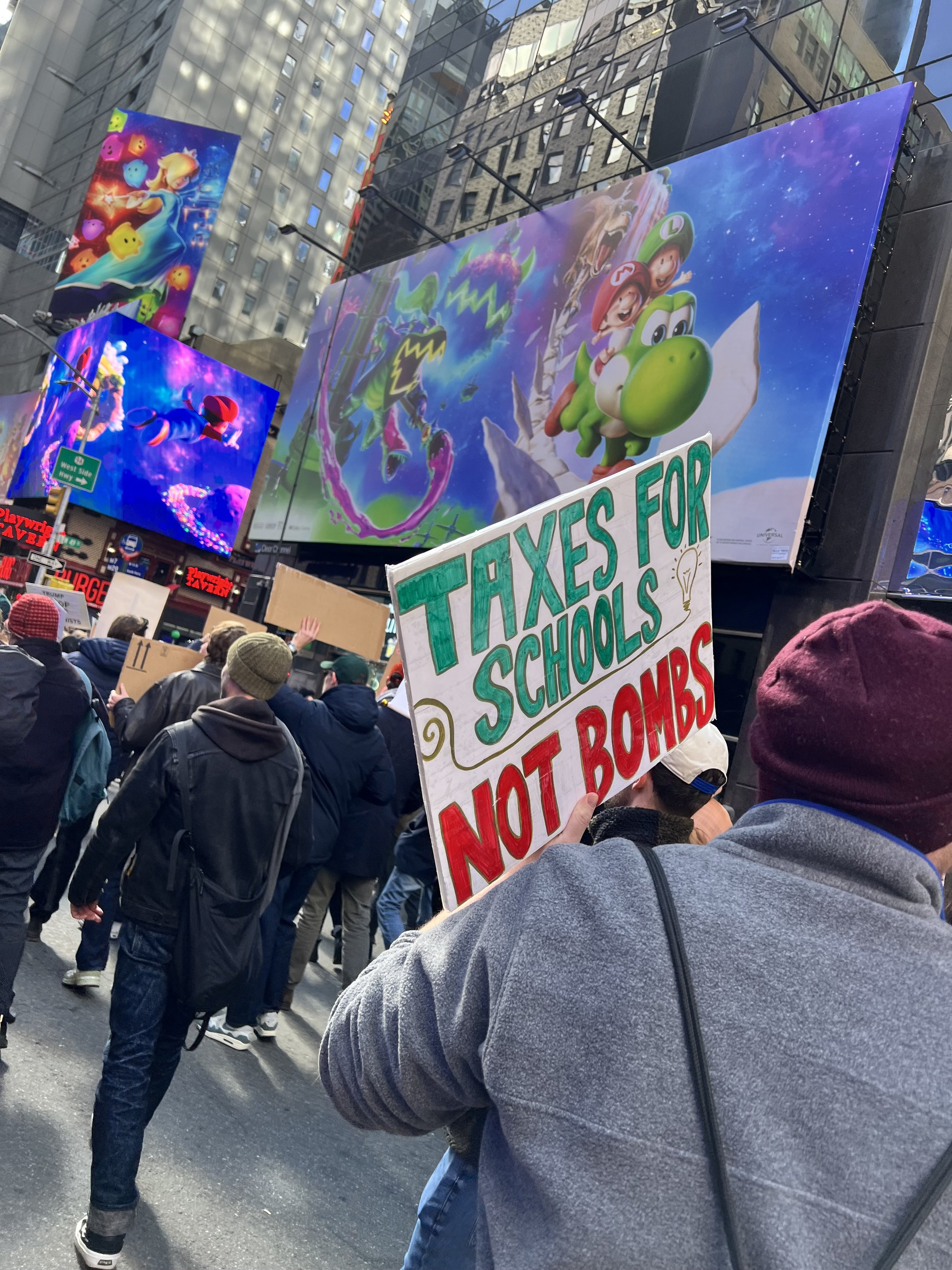 At the No Kings march last weekend & loved this sign. Taxes for schools not bombs. Yes! What else could they be used for? Write it in an essay or poem.